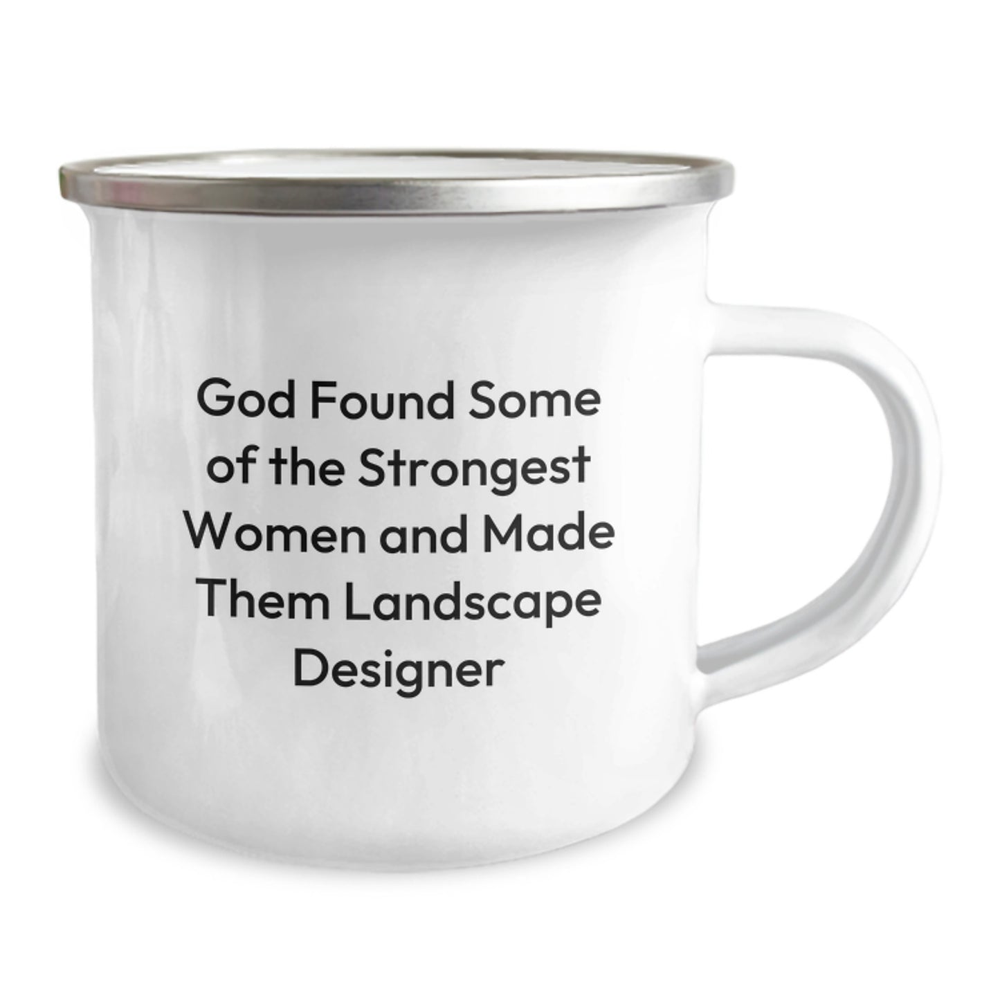 Are you looking for a unique gift for a Landscape Designer who just graduated? Look no further! This funny quote says it all: 'God Found Some Of The Strongest Women And Made Them Landscape Designer'. It's a great way to show your appreciation for their hard work and dedication to the field. This 12 oz camping mug is made of stainless steel with an enamel finish, making it sturdy and easy to clean. Hand washing with mild detergent is recommended. The permanent printing won't fade after washing, ensuring your message remains bold and clear.