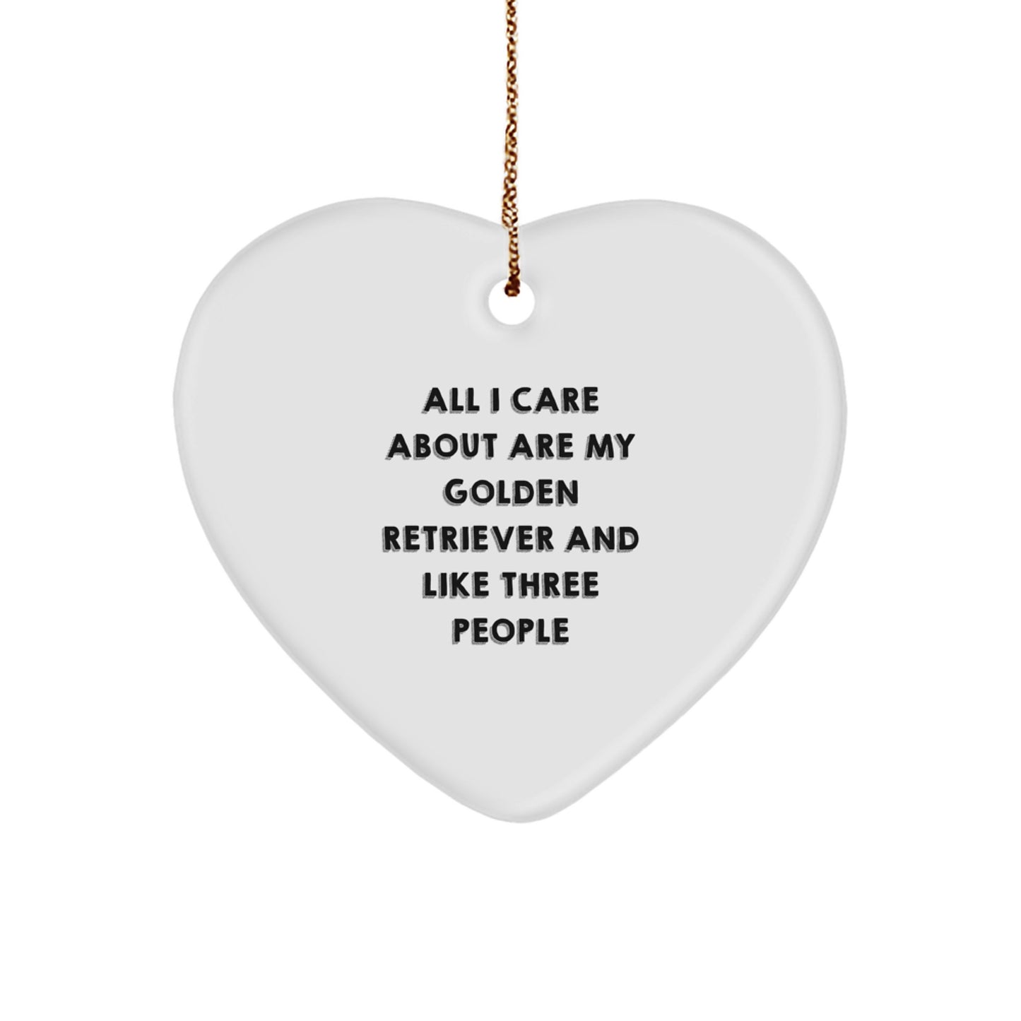 Golden Retriever Dog Lovers Gifts from Friends for Christmas - Heart Ornament with Funny Quote 'All I Care About Are My Golden Retriever And Like Three People'