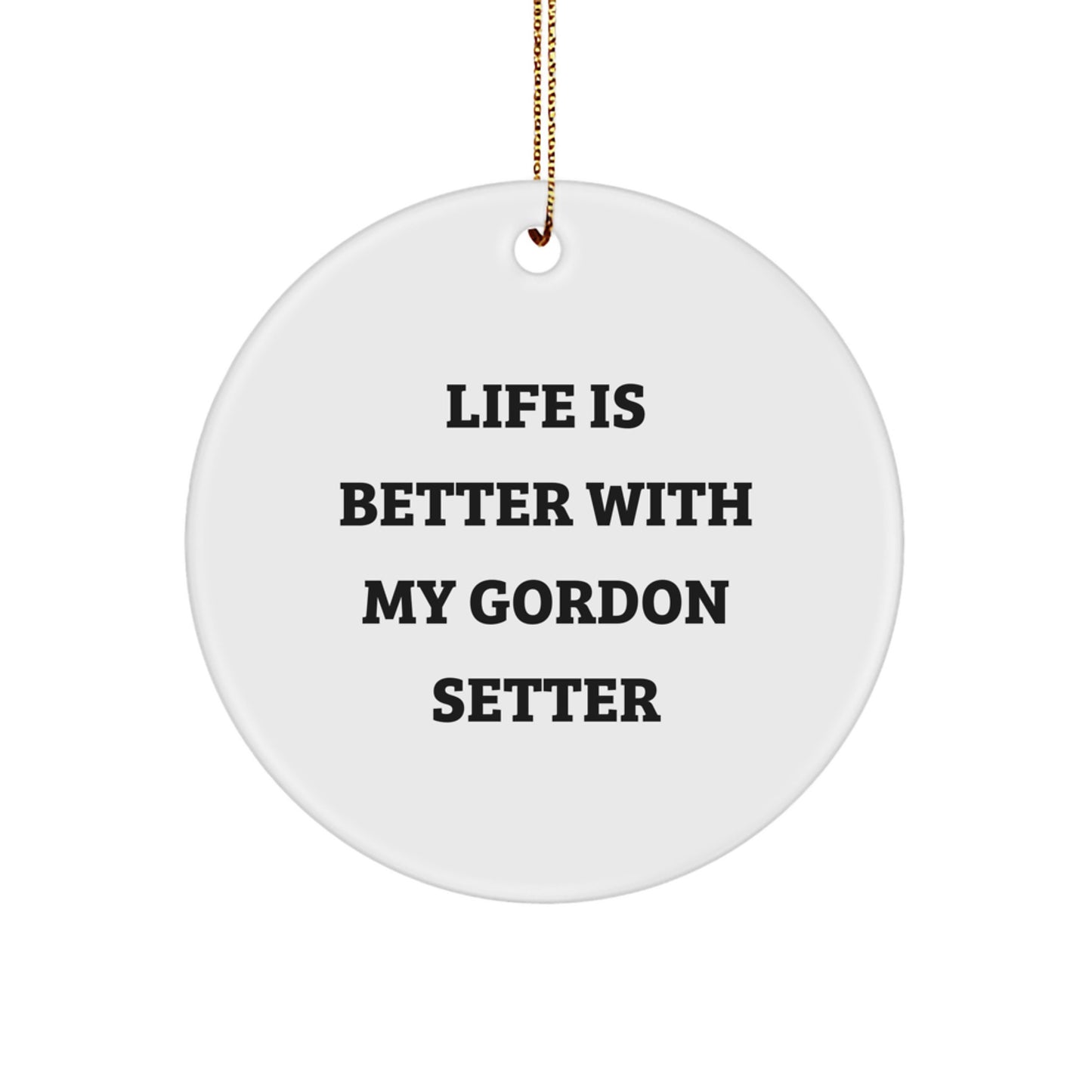- The quote 'Life Is Better With My Gordon Setter' is a heartwarming way to express your feelings and thoughts about these wonderful dogs. This Circle Ornament is the perfect way to showcase your love and appreciation for these beautiful breeds.