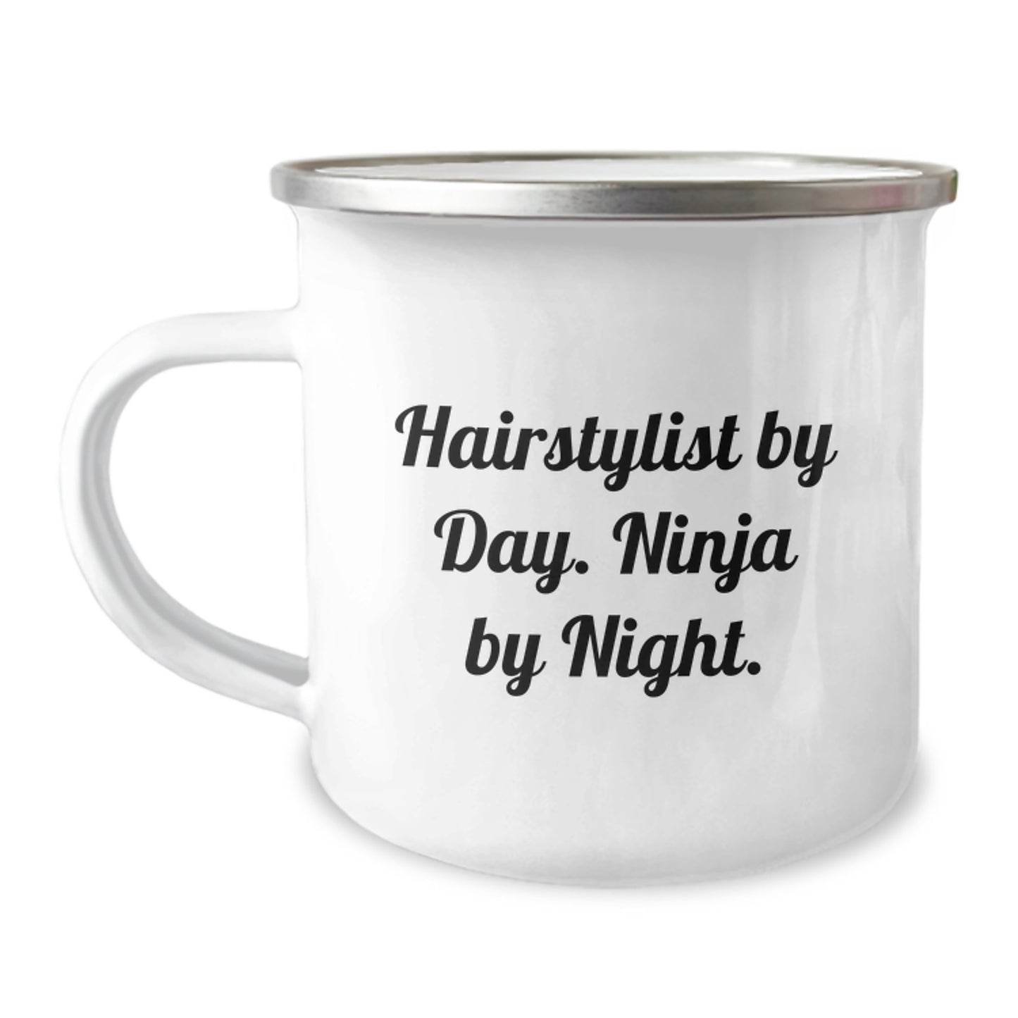 Hairstylist Ninja Gifts, Funny Camping Mug for Graduation, Enamel Finish, 12 oz Capacity - Gifts from Friends to Hairstylist