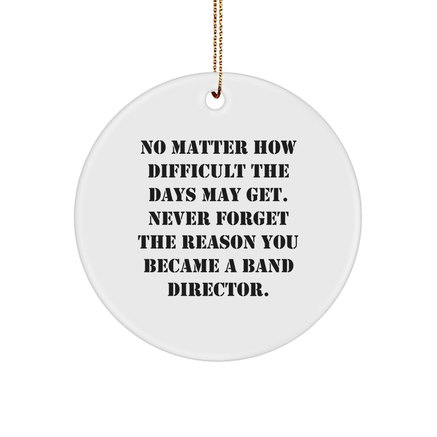 Celebrate the dedication and passion of a Band Director with this unique and heartwarming gift! No matter how difficult the days may get, never forget the reason you became a Band Director. This beautifully crafted Circle Ornament is a thoughtful way to show your appreciation for their hard work and dedication. Made from sturdy MDF with a high-gloss plastic finish, it features vibrant colors and a stylish design that will make it a treasured keepsake. Whether you're a friend, family member, or coworker, this gift is sure to bring a smile to their face. So why not show your Band Director how much you care with this thoughtful and inspiring gift?