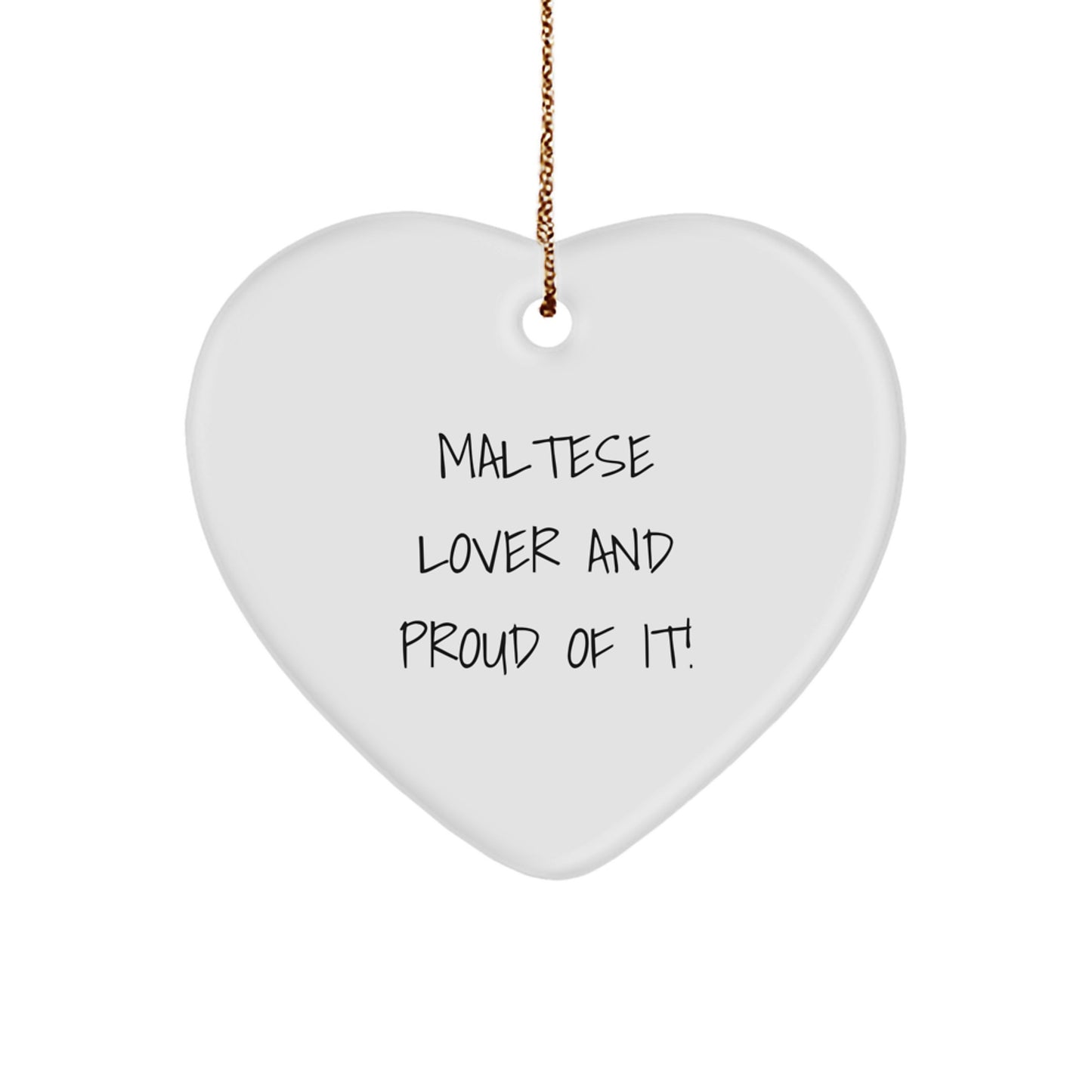 - Bring a smile to any Maltese Dog lover's face with this unique and heartwarming Heart Ornament, featuring a funny quote that reads 'Maltese Lover And Proud Of It!'