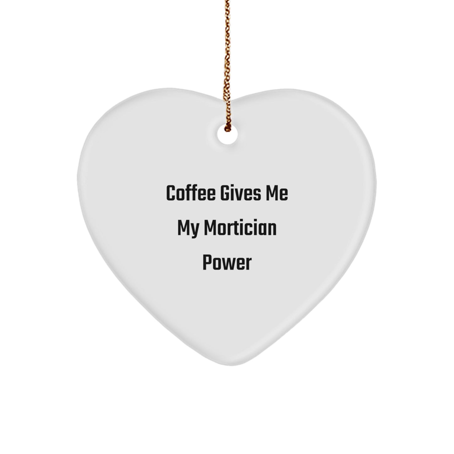 - Make a statement with this unique Mortician Heart Ornament, featuring the funny quote 'Coffee Gives Me My Mortician Power'