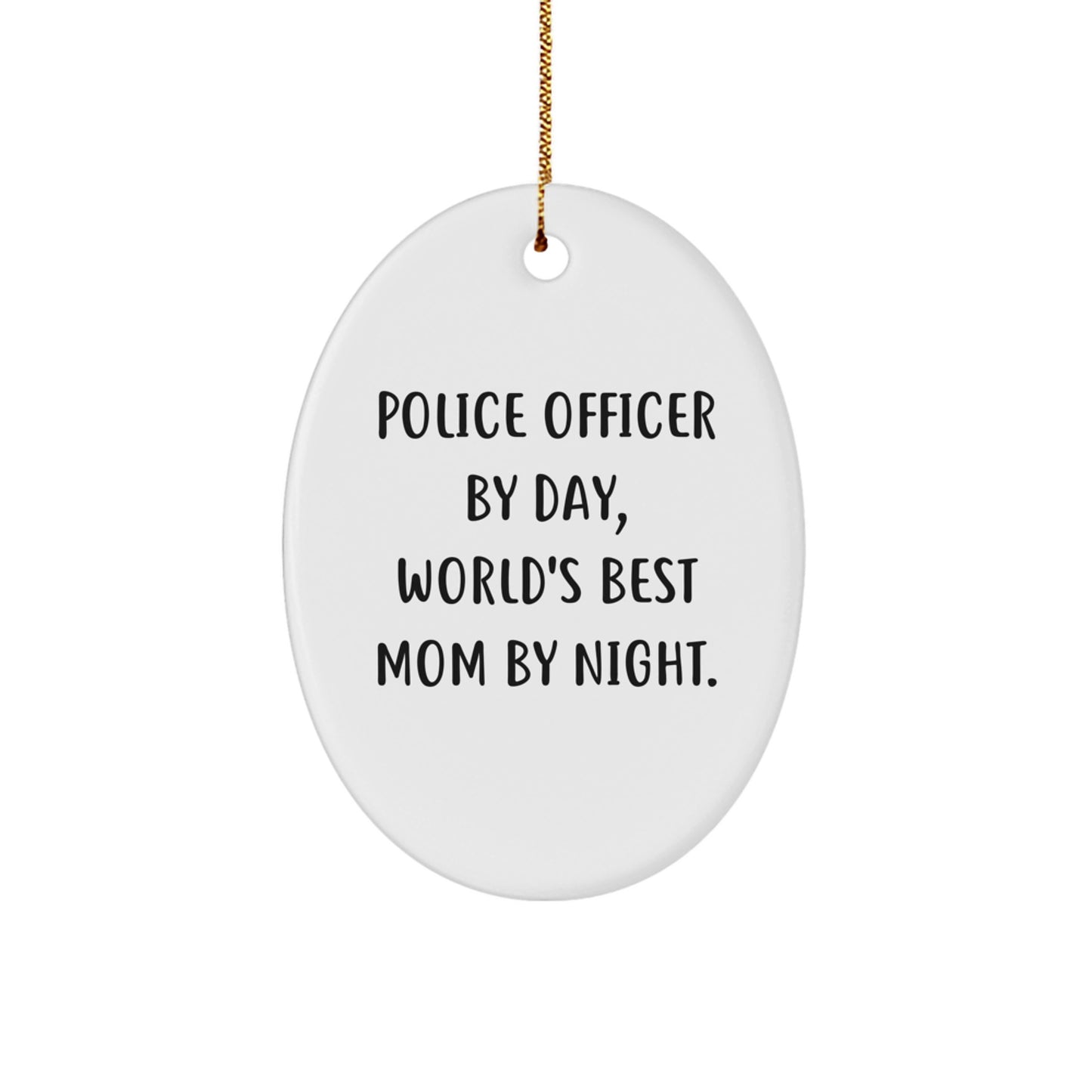 - Get your 'Police Officer By Day, World's Best Mom By Night.' oval ornament today and make it a holiday to remember - order now and get ready to hang it on your tree or give it as a gift!