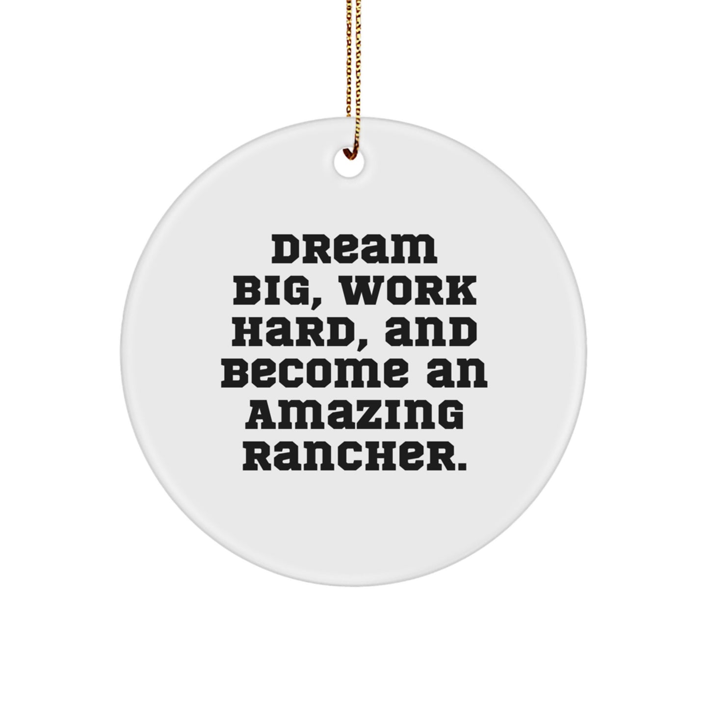 Rancher Gifts from Men - Inspirational Circle Ornament for Christmas, 'Dream Big, Work Hard, And Become An Amazing Rancher.'