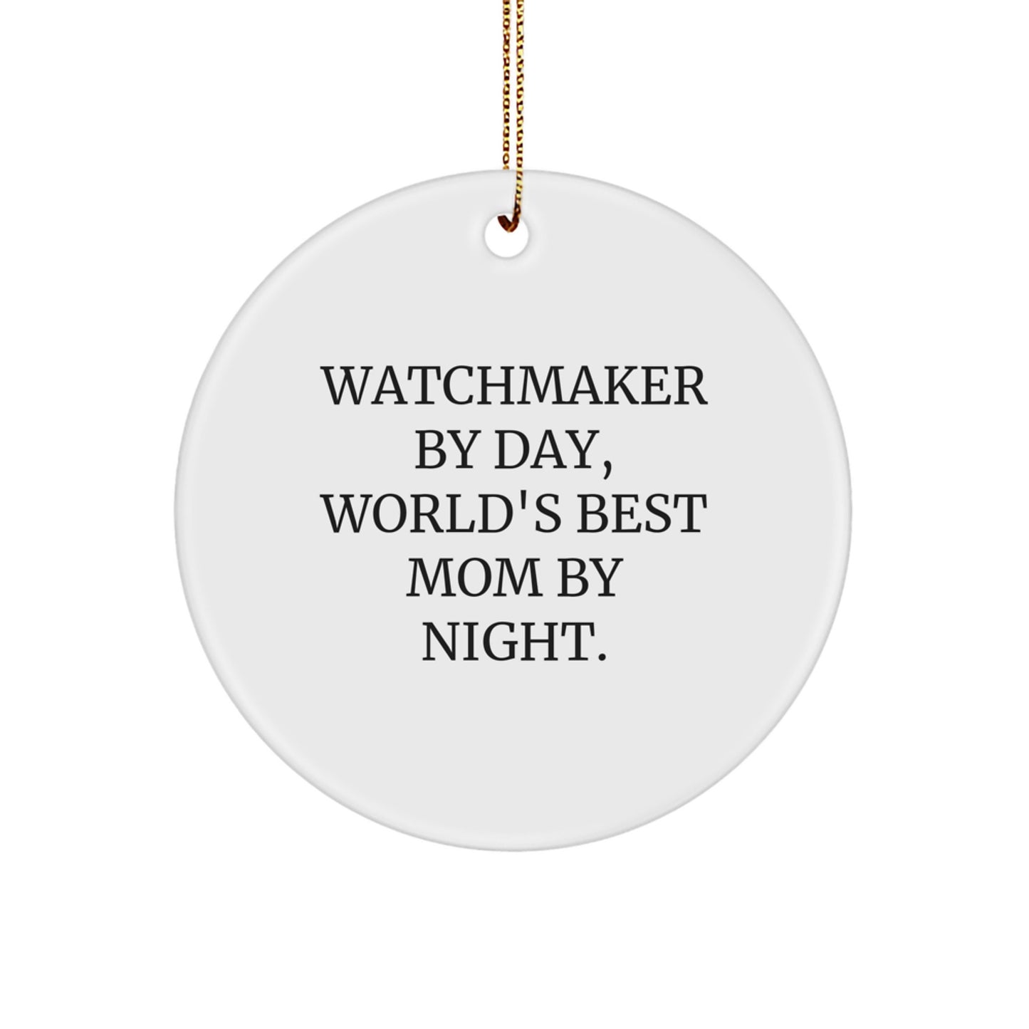 Watchmaker Gifts: Funny 'Watchmaker By Day, World's Best Mom By Night.' Circle Ornament, White, 2.75'' Tall, Gifts from Mom to Watchmaker, Christmas Unique